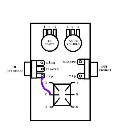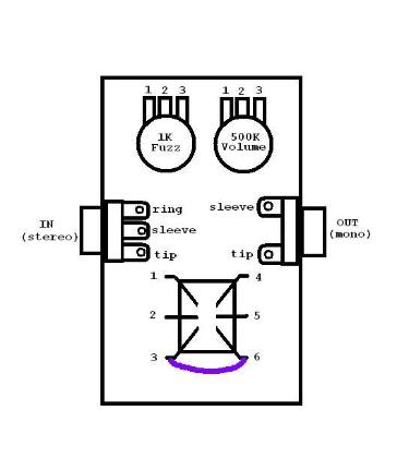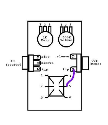 Measure out enough purple wire to connect LUG 5 of the footswitch to the TIP of the OUT jack. You want to