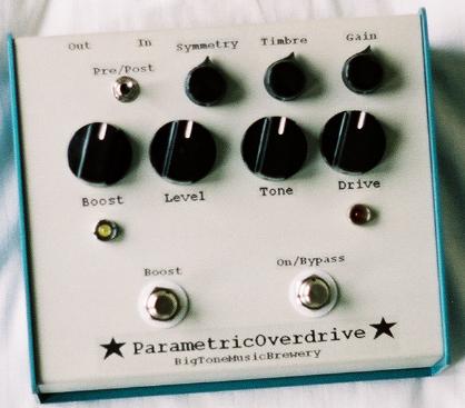 All overdrives are pretty much the same except for slight modifications to 3 tonal parameters: Gain, Timbre, and Symmetry. Some OD's are high gain that boarder on being a distortion. Some OD's are low gain that act more as a dirty boost to push the front end of your amp. The Gain parameter knob can dial in just the right amount of gain for the drive knob to control. Some OD's are bright and try to recreate the Fender sound. Some OD's are darker and try to recreate the older Marshall sound. The Timbre parameter knob sets the frequency at which the midrange roll off of the tone knob occurs so you can get the sound of all the other amps that are in between. Some amps become very compressed at high levels and others have lots of headroom. The same is true for OD pedals. Some OD's have symmetrical clipping and sound very compressed. Some OD's have assymetrical clipping and sound very open. The Symmetry parameter knob lets you dial in the perfect blend of symmetrical and asymmetrical clipping for the exact type of tube tone that you're looking for. The Boost channel has a Pre/Post switch so you can place the boost either before the overdrive to change the dynamics of the pedal and push it into new sonic territory, or place it after the overdrive for huge amounts of extra volume. |