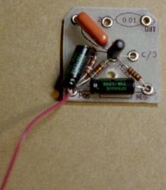 where it meets with the other end of the .01uF cap. Your circuit board should look like the picture below when