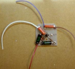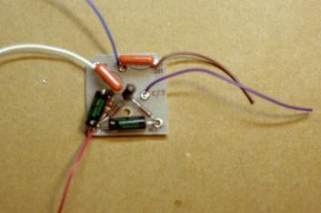 where it meets with the other end of the .0047uF cap. Your circuit board should look like the picture below when