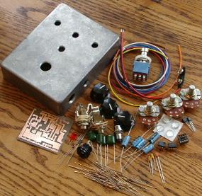 Comes with everything seen here: *Pre-Drilled Enclosure *Ready-to-solder Circuit Board *3PDT footswitch (true bypass) *All resistor values needed *All capacitor values needed + extra mod cap *All Diodes needed + extra mod diode *JRC 4558D op Amp + extra mod TI RC4558P *MPSA18 Transistors *Op Amp Socket (no desoldering to change op amps!) *Red LED *Chromed LED Bezel *9v AC Adaptor Jack *Alpha potentiometers *Black Fluted knobs *Neutrik Jacks *rubber feet *Nylon circuitboard standoffs *Heavy-duty battery snap *All the neccessary hook-up wire |